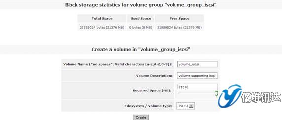 接著在右側(cè)的“Volumes section”區(qū)域選擇“Volume Groups”來(lái)創(chuàng)建一個(gè)卷組。在區(qū)域“Create a new volume group”處填寫卷組 volume group 的名稱為“volume_group_iscsi”,同時(shí)勾選剛剛在上一步所創(chuàng)建的物理卷 /dev/sda4,最后點(diǎn)擊“Add volume group”。如圖